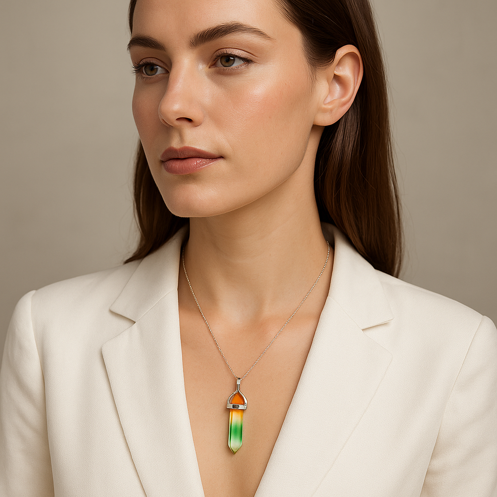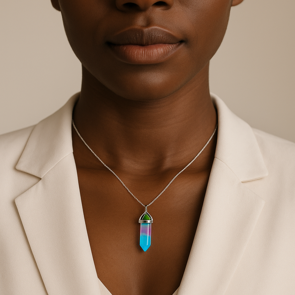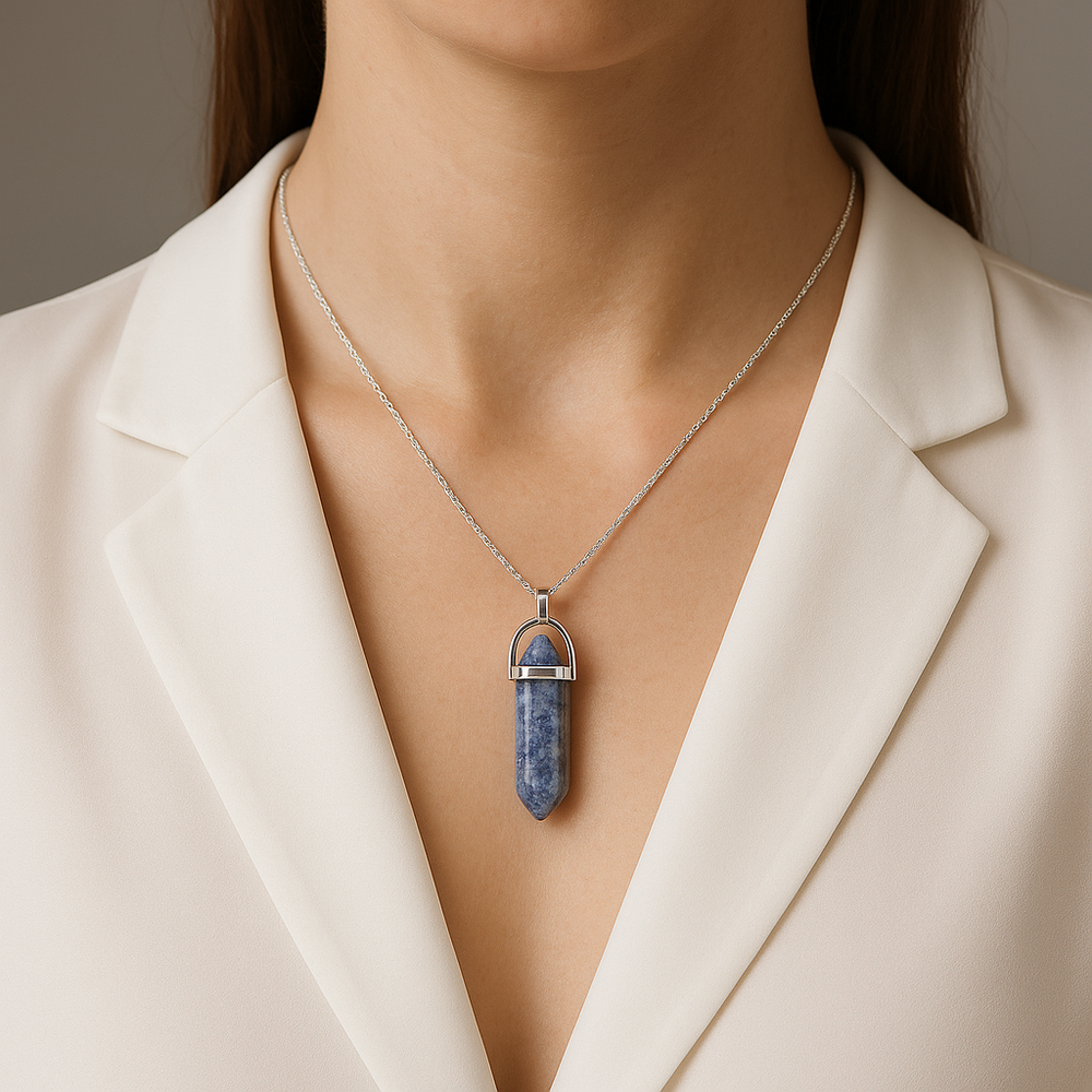 Collar con colgante de punta de cuarzo sintético plateado hecho a mano