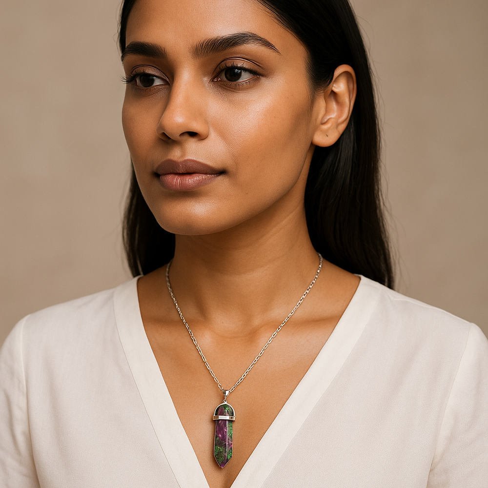 Collar con colgante de rubí natural en punta de zoisita hecho a mano