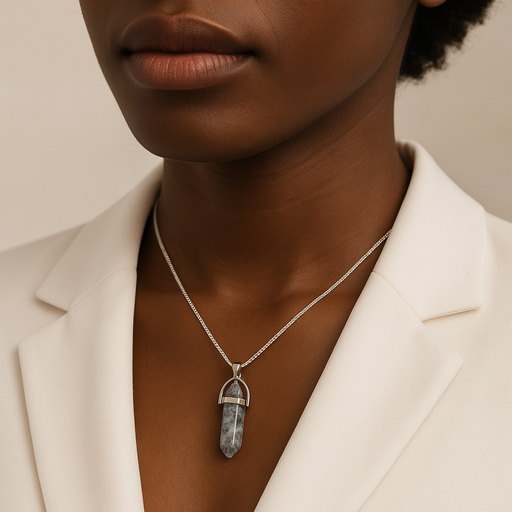 Collar con colgante de punta de jaspe dálmata natural hecho a mano