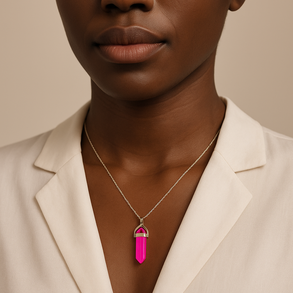 Collar con colgante de punta de ágata rosa teñida, hecho a mano