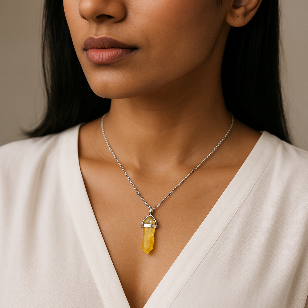 Collar con colgante de punta de ágata amarilla teñida, hecho a mano