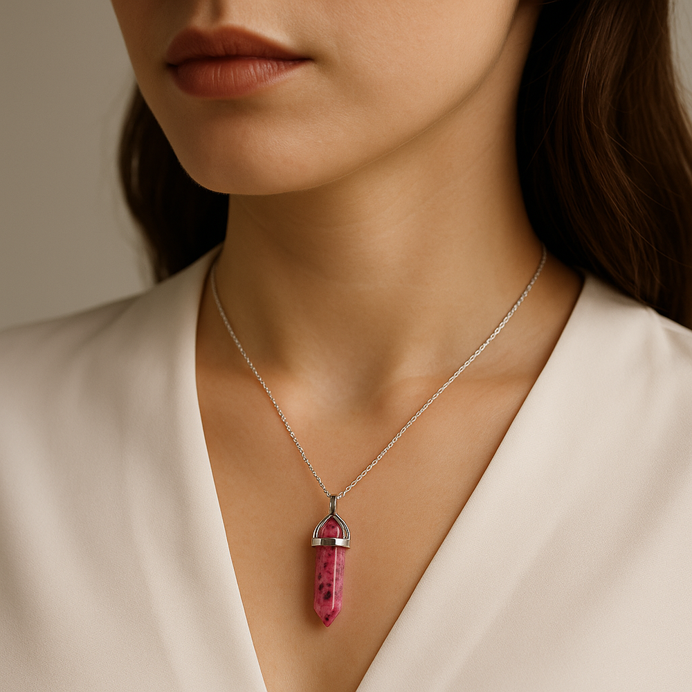 Collar con colgante de punta de rodonita natural hecho a mano