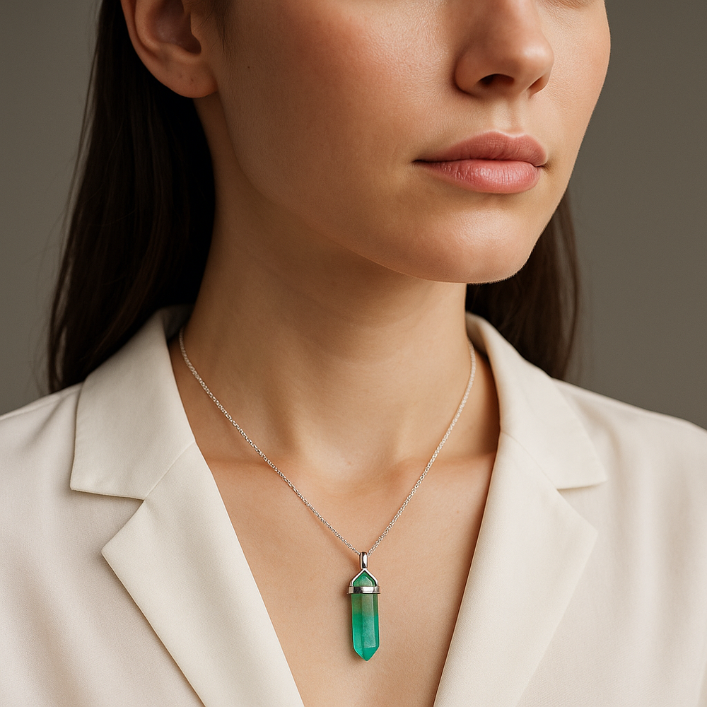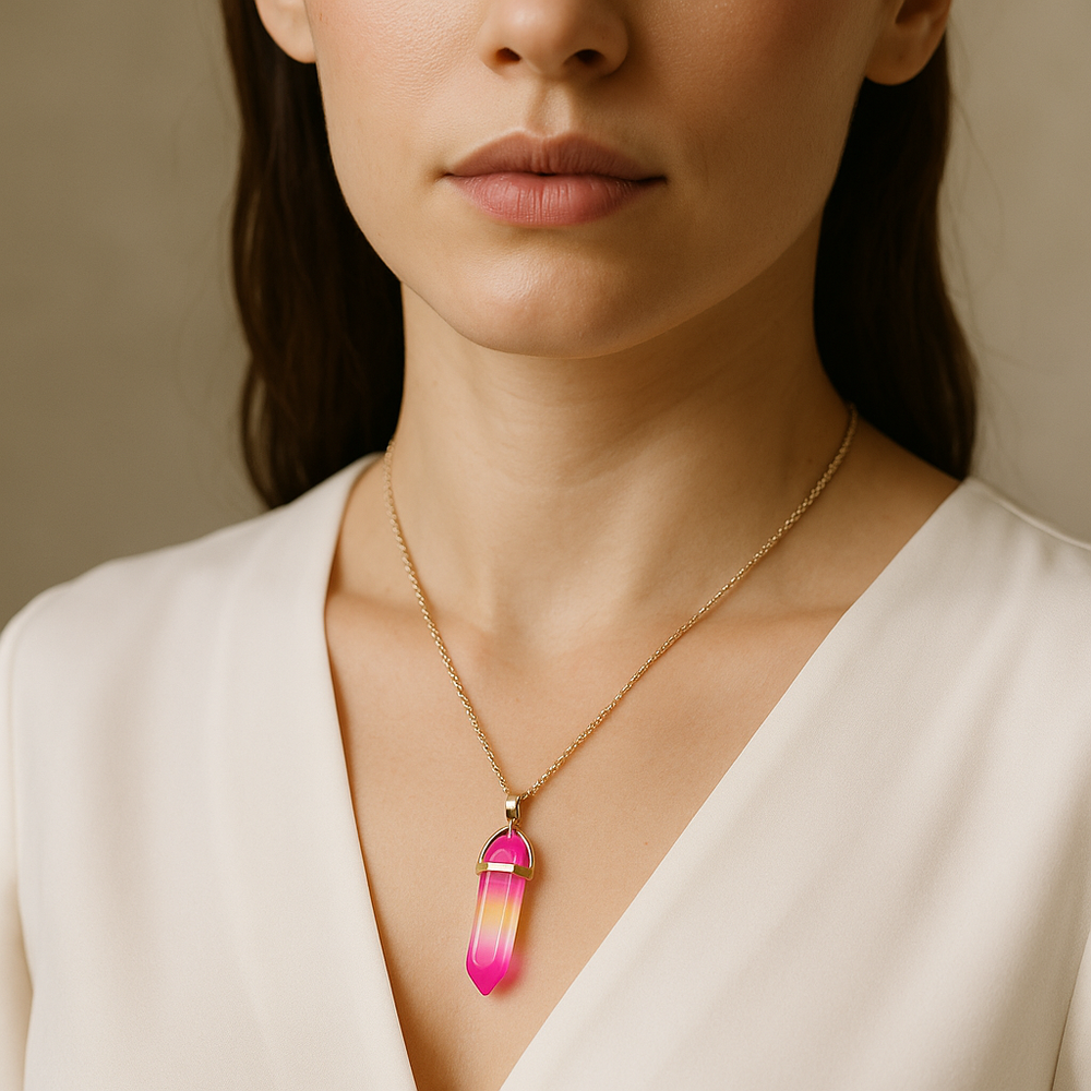 Collar con colgante de punta de cuarzo aura hecho a mano