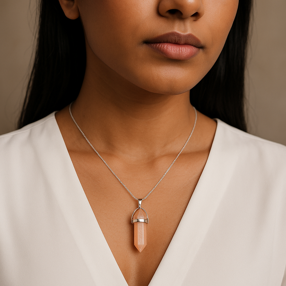 Collar con colgante de punta de aventurina color melocotón natural hecho a mano