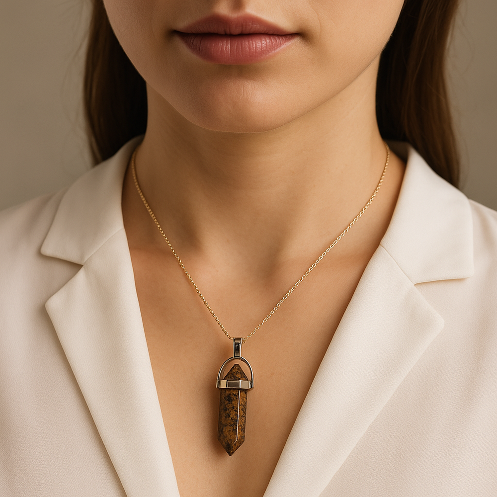 Collar con colgante de punta de obsidiana con brillo dorado natural hecho a mano