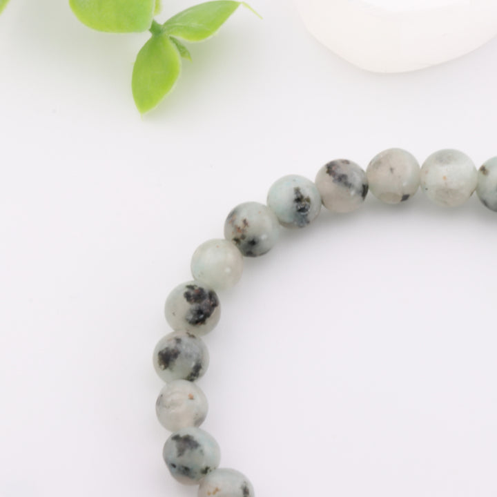 Bracelet artisanal en jaspe sésame et kiwi naturel - Sans métal, 6 mm - Héliotrope, jaspe forêt tropicale