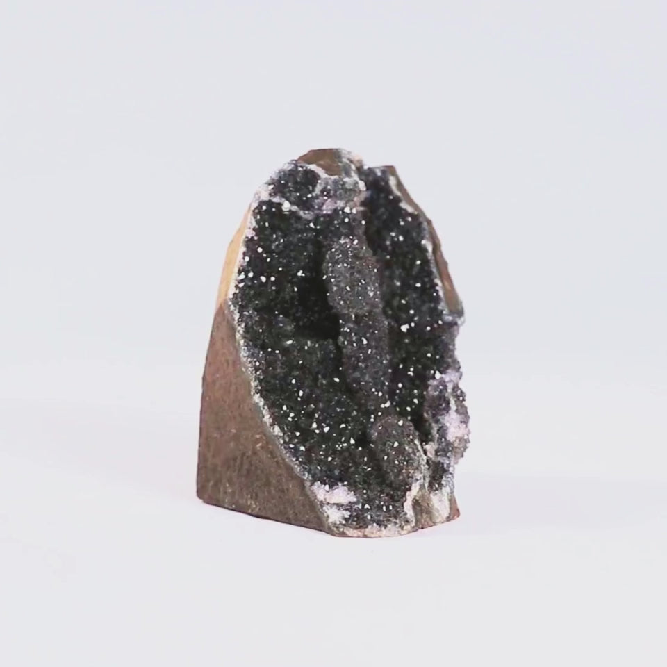 Parfait comme point focal de méditation ou comme pièce maîtresse d'exposition, cette géode unique en son genre équilibre la protection énergétique avec une esthétique accrocheuse.