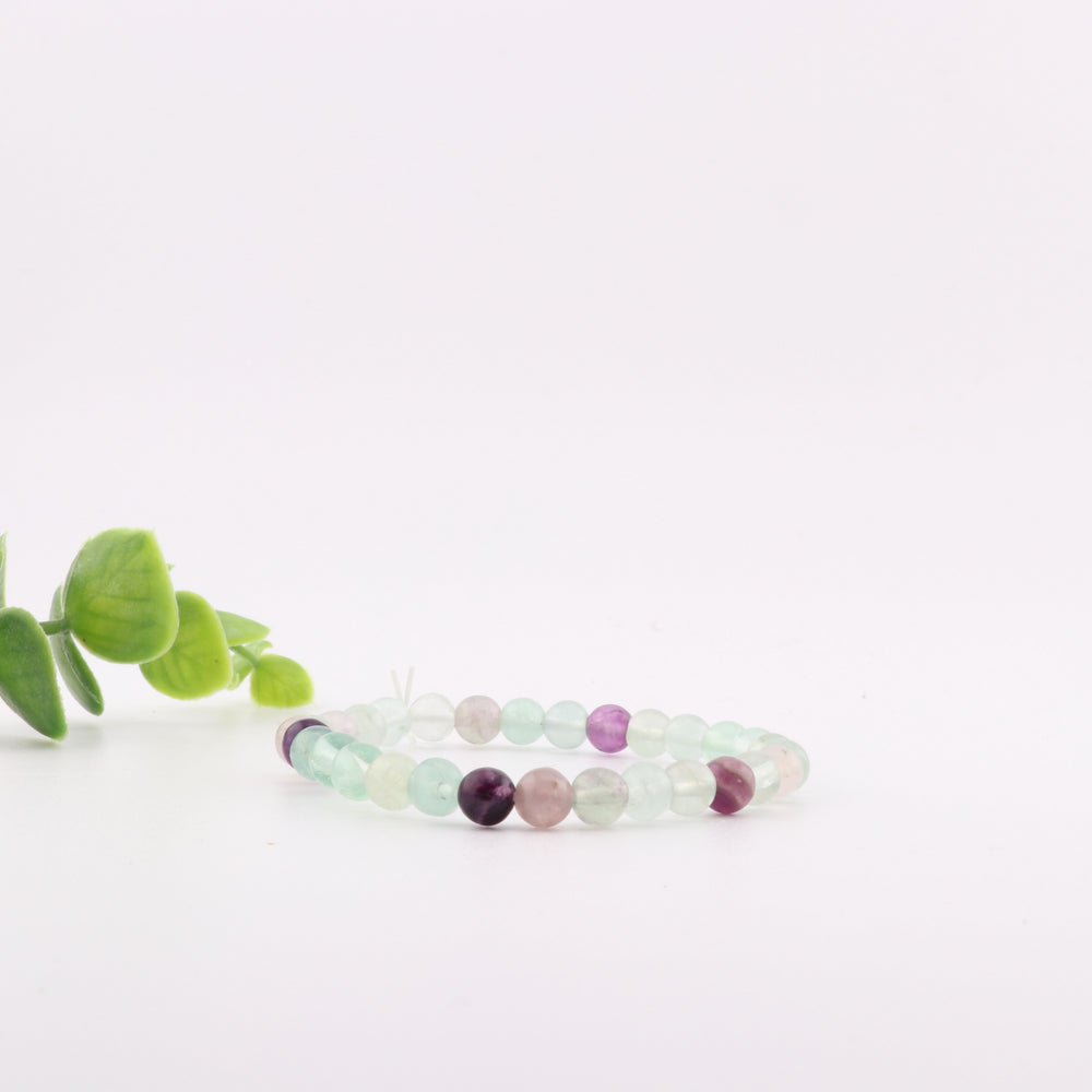 Bracelet en fluorite arc-en-ciel naturelle – Sans métal, 6 mm – Bijoux en cristal apaisants