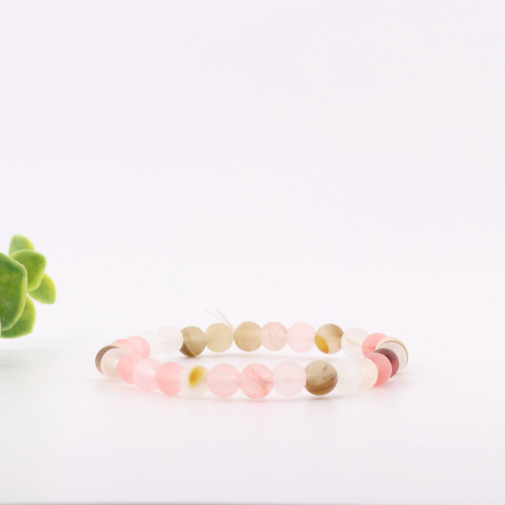 Bracelet en quartz rose naturel – Sans métal, 6 mm – Pierre d'amour, délice du cœur