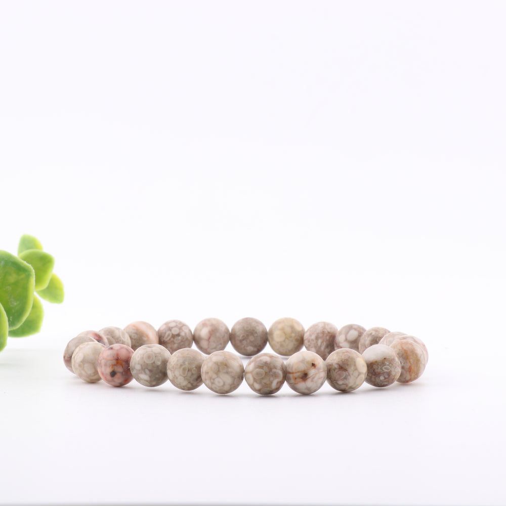 Bracelet en corail fossilisé teinté naturel – Sans métal, 8 mm – Gemme océanique unique