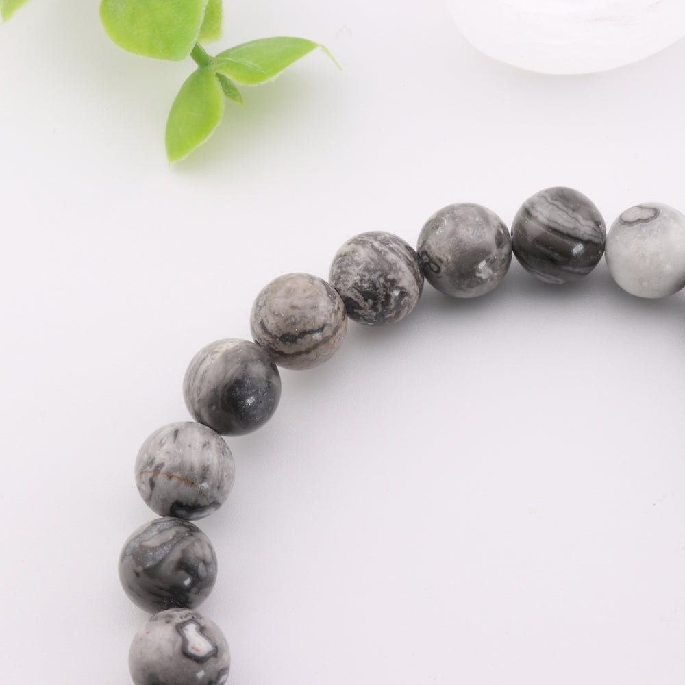 Bracelet en agate grise naturelle - Sans métal, 8 mm - Bijoux en cristal de guérison