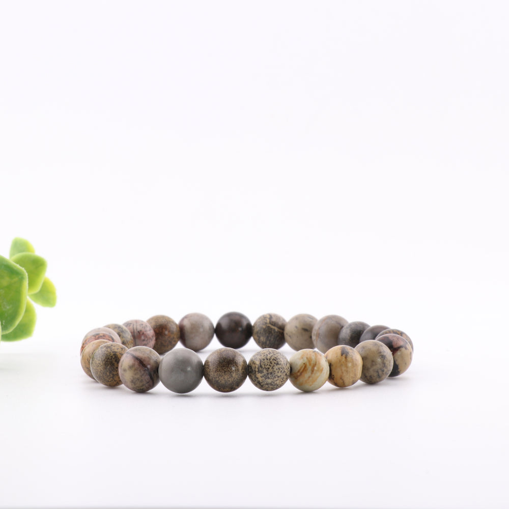Bracelet en pierre naturelle de carte/jaspe Picasso – Sans métal, 8 mm – Bijoux de guérison par les cristaux
