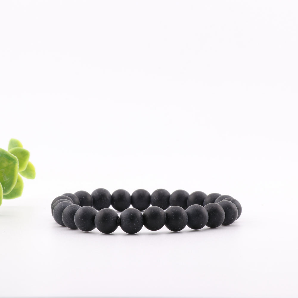 Bracelet en pierre naturelle noire givrée – Sans métal, 8 mm – Bijou unique et élégant