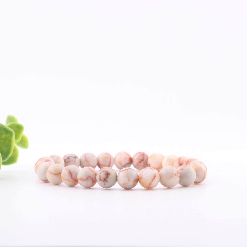 Bracelet en jaspe fleur de prunier naturel – Sans métal, 8 mm – Bijoux en cristal uniques