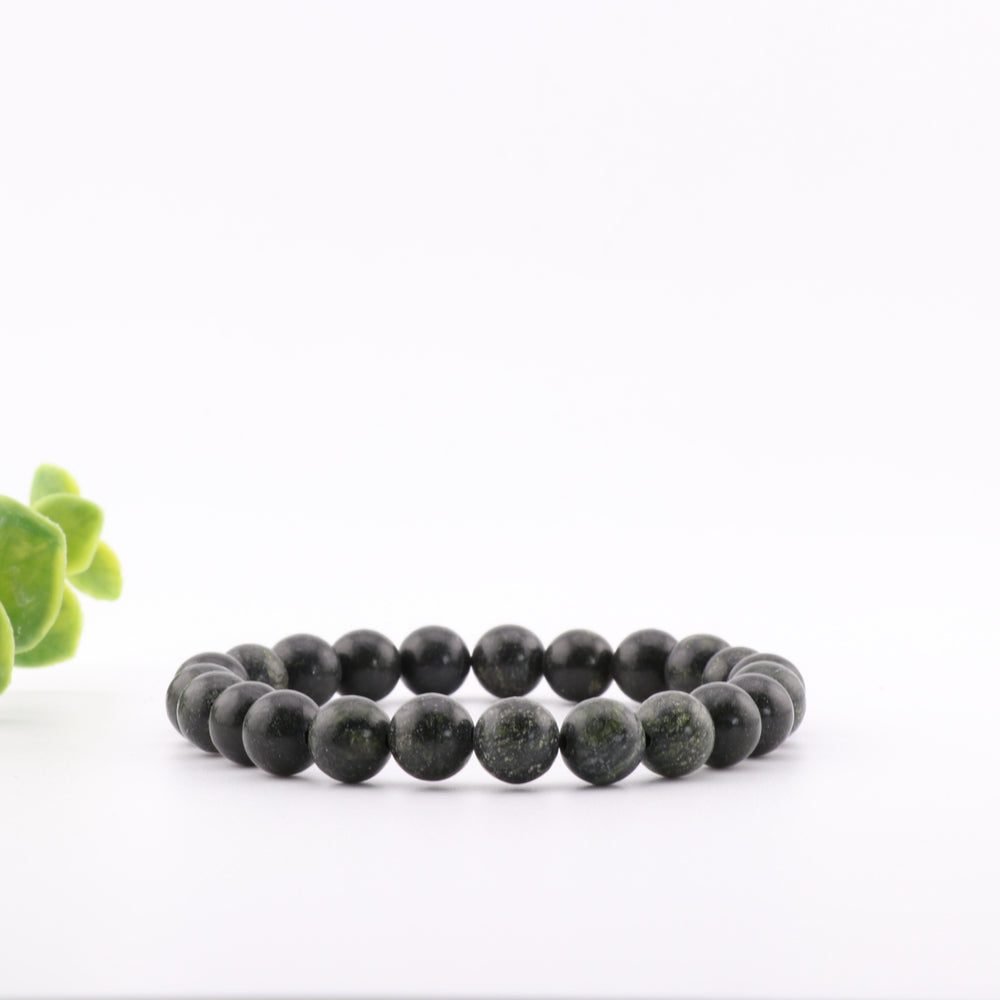 Bracelet en pierre naturelle serpentine/dentelle verte – Sans métal, 8 mm – Bijoux en pierres précieuses de guérison