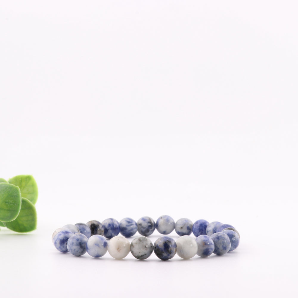 Bracelet en jaspe bleu naturel - Sans métal, 8 mm - Pierre précieuse de jaspe fabriquée à la main