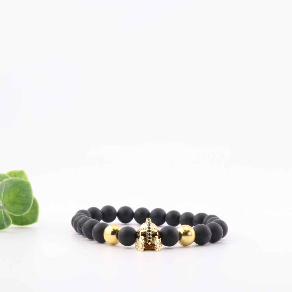 Bracelet en onyx givré naturel – Élégance artisanale avec accent de casque antique doré, perles de 8 mm