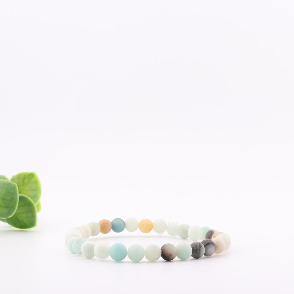 Bracelet en amazonite naturelle givrée – Sans métal, 6 mm – Stimule la positivité et l'énergie calme