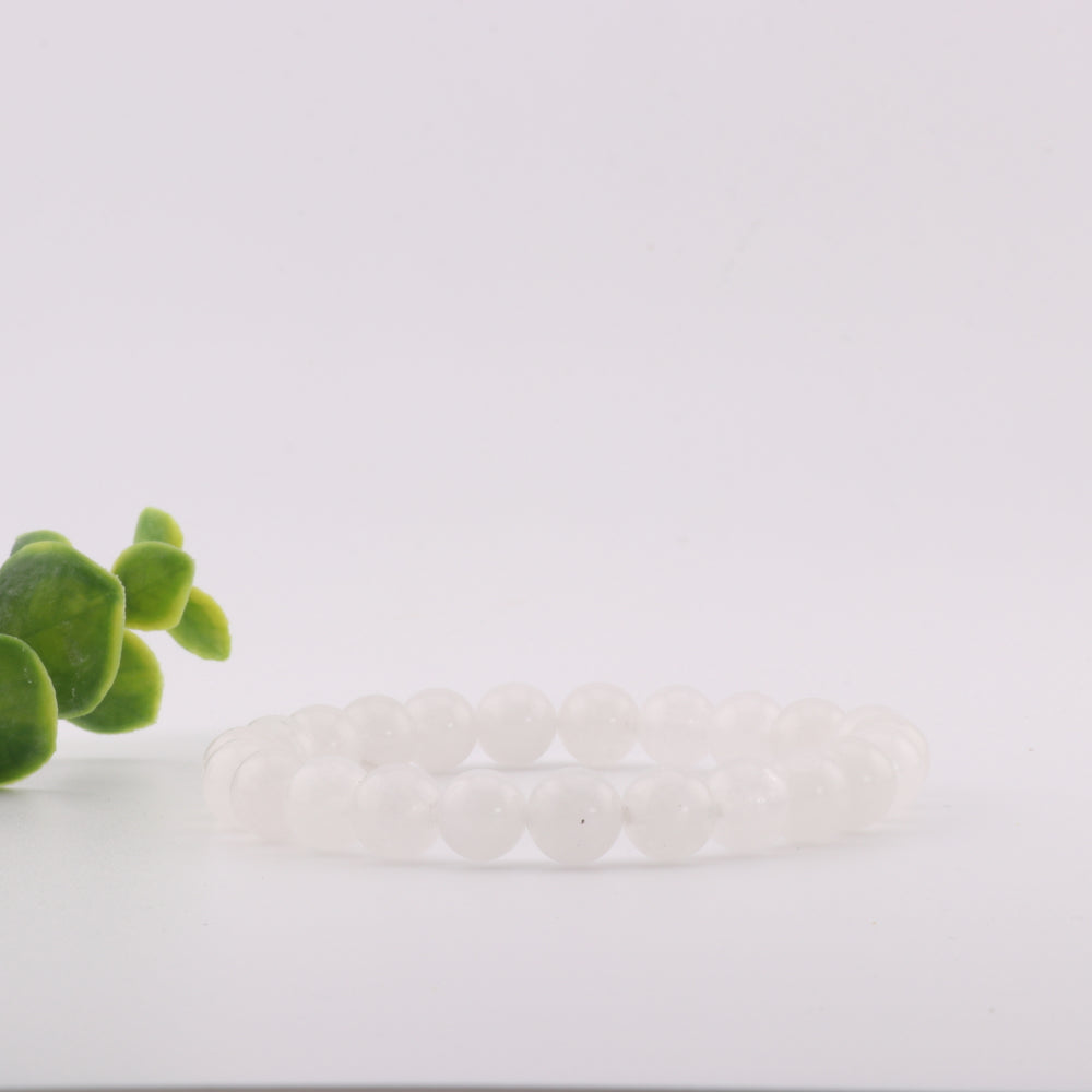 Bracelet en jade blanc naturel – Sans métal, 8 mm – Cristal de guérison, porte-bonheur