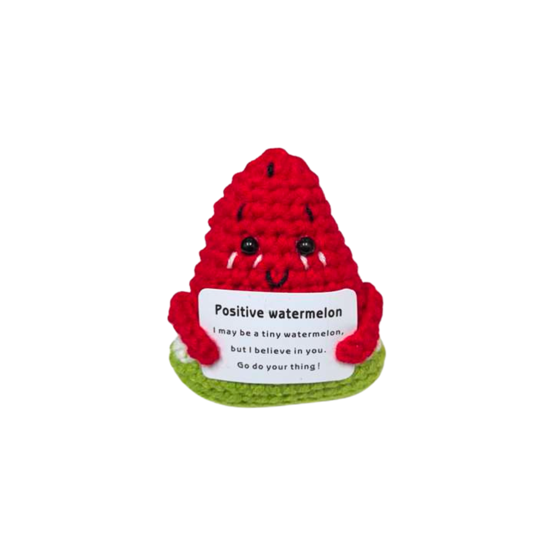 Watermelon Motivational Crochet Cheer Pal - Handmade Emotional Support Desk Accessory