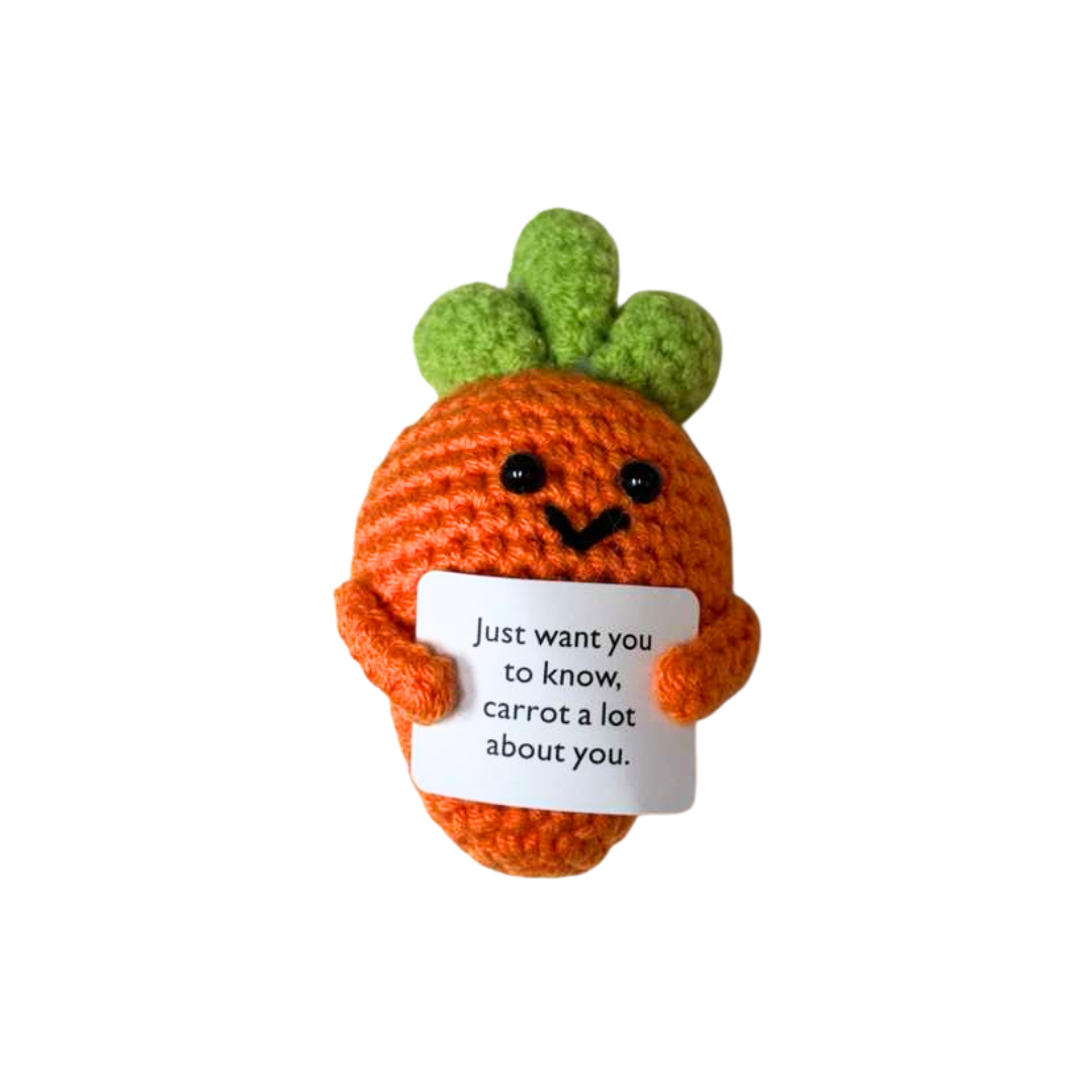 Carrot Motivational Crochet Cheer Pal - Handmade Emotional Support Desk Accessory