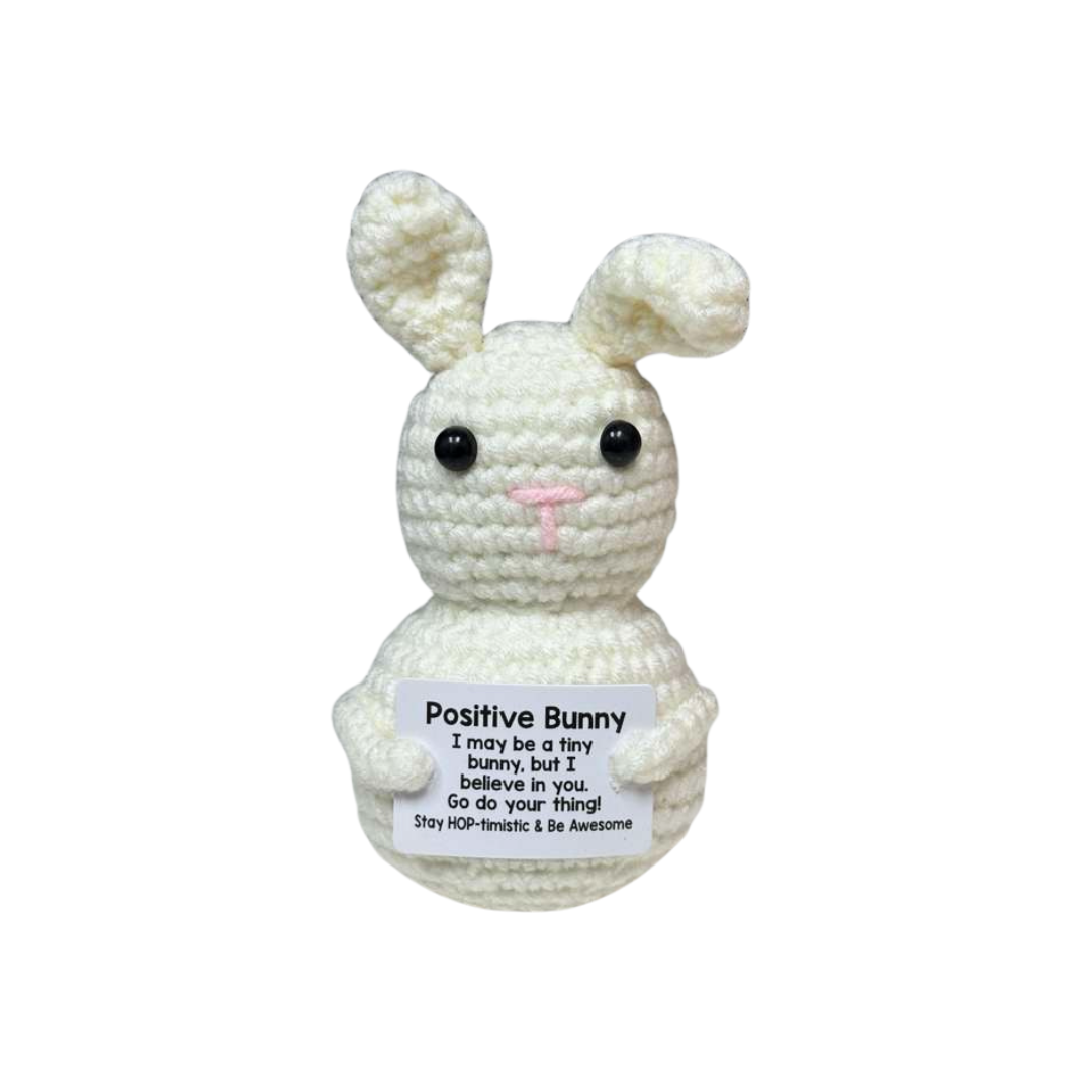 Bunny Rabbit Motivational Crochet Cheer Pal - Handmade Emotional Support Desk Accessory