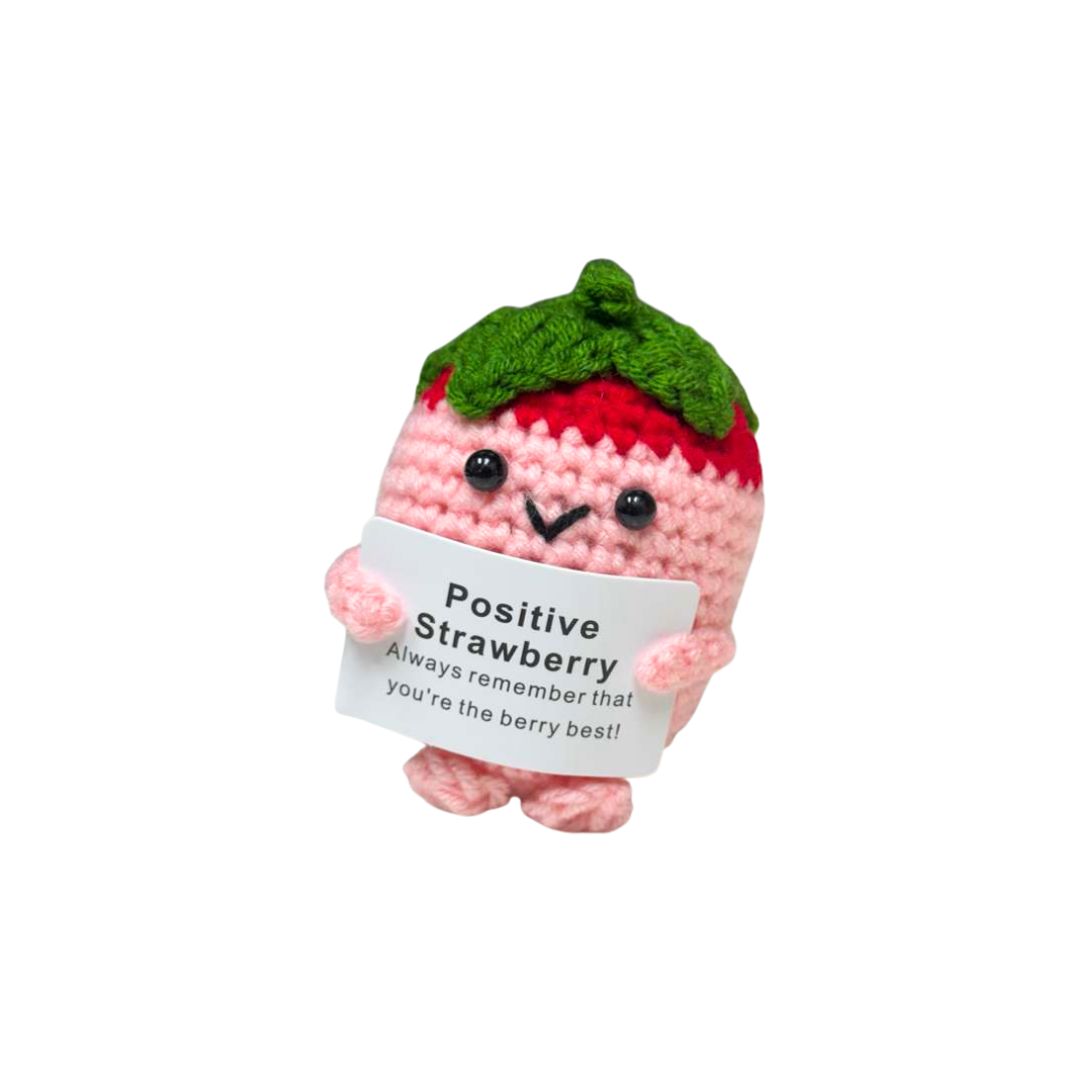 Pink Strawberry Motivational Crochet Cheer Pal - Handmade Emotional Support Desk Accessory