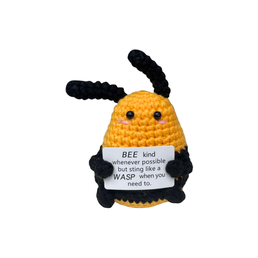Bumble Bee Motivational Crochet Cheer Pal - Handmade Emotional Support Desk Accessory