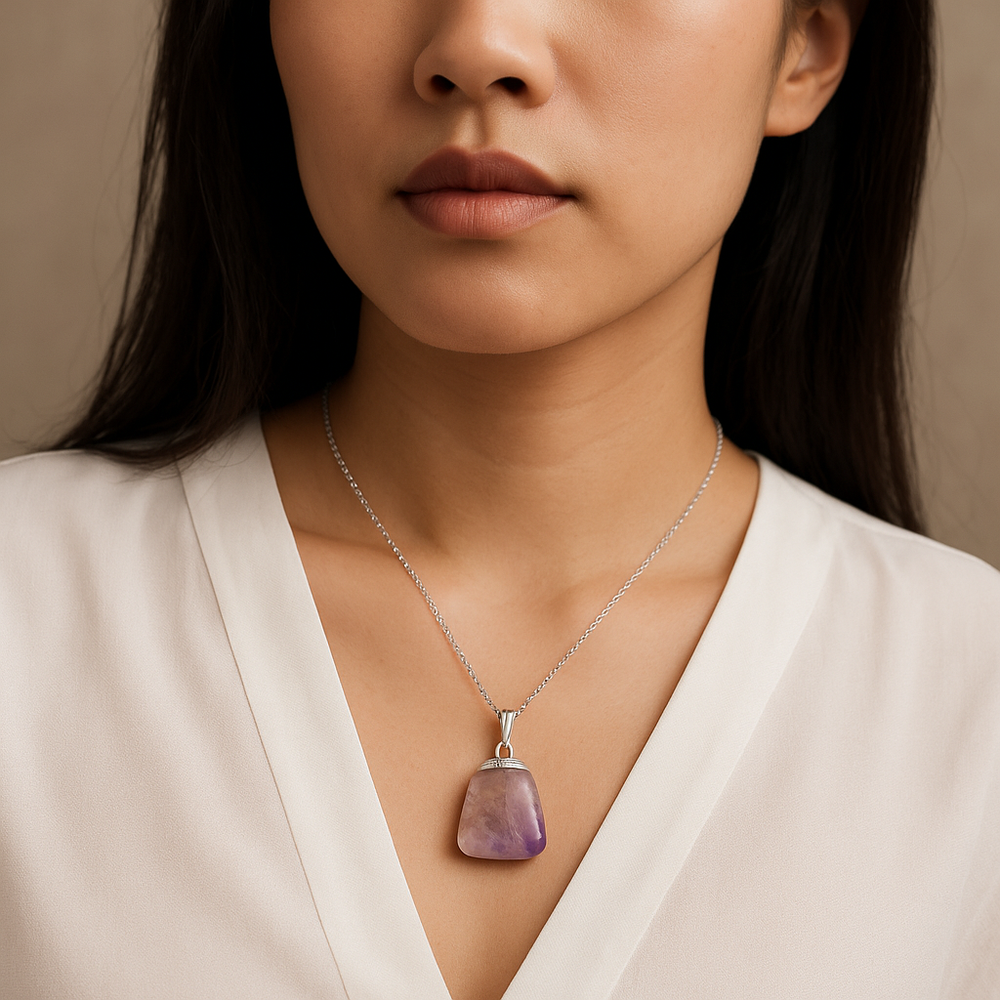 Collier avec pendentif en améthyste naturelle de rêve, fabriqué à la main