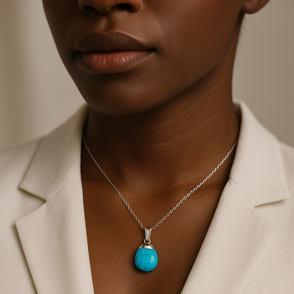 Collier avec pendentif en pierre précieuse howlite turquoise synthétique fabriqué à la main