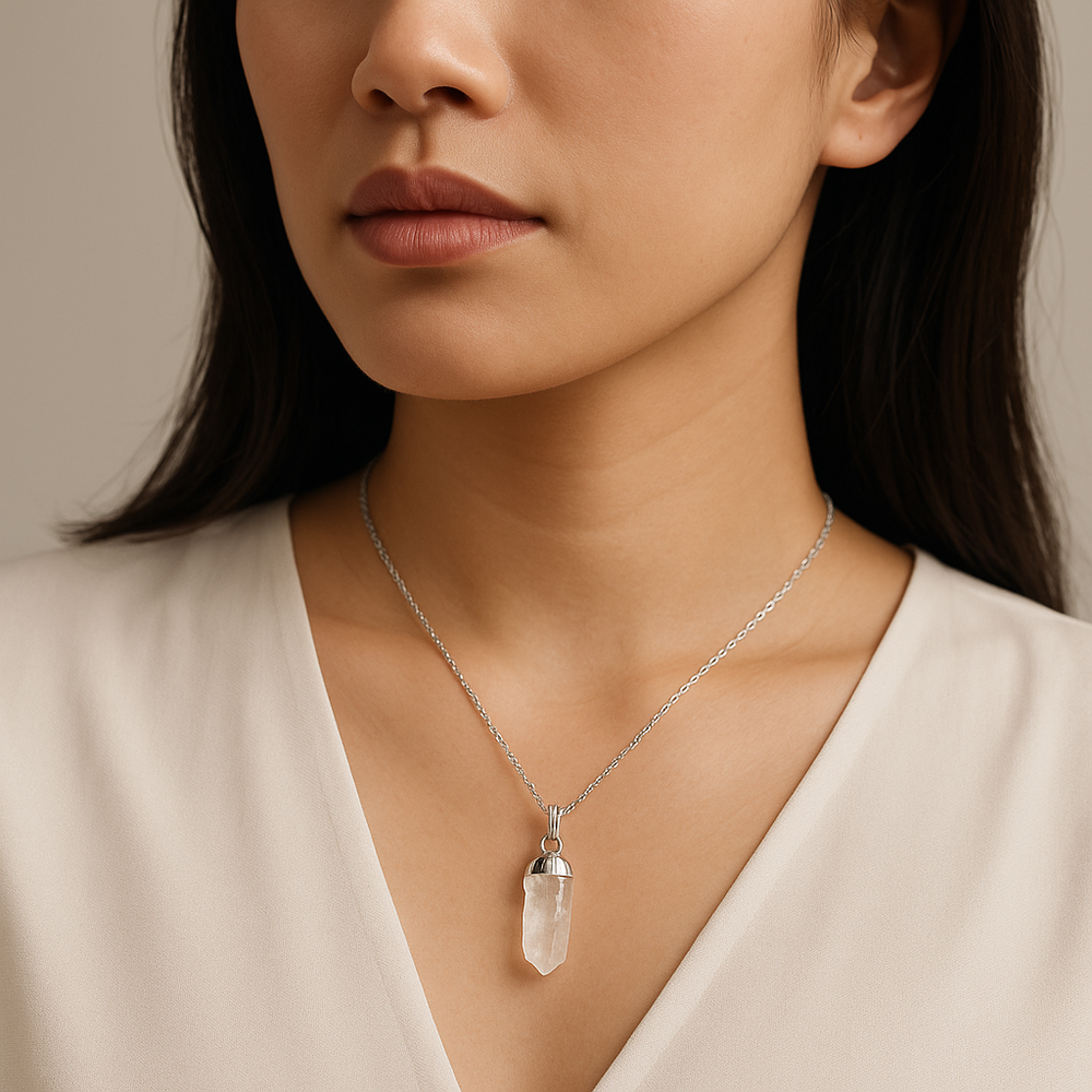 Collier pendentif en quartz lémurien naturel fabriqué à la main