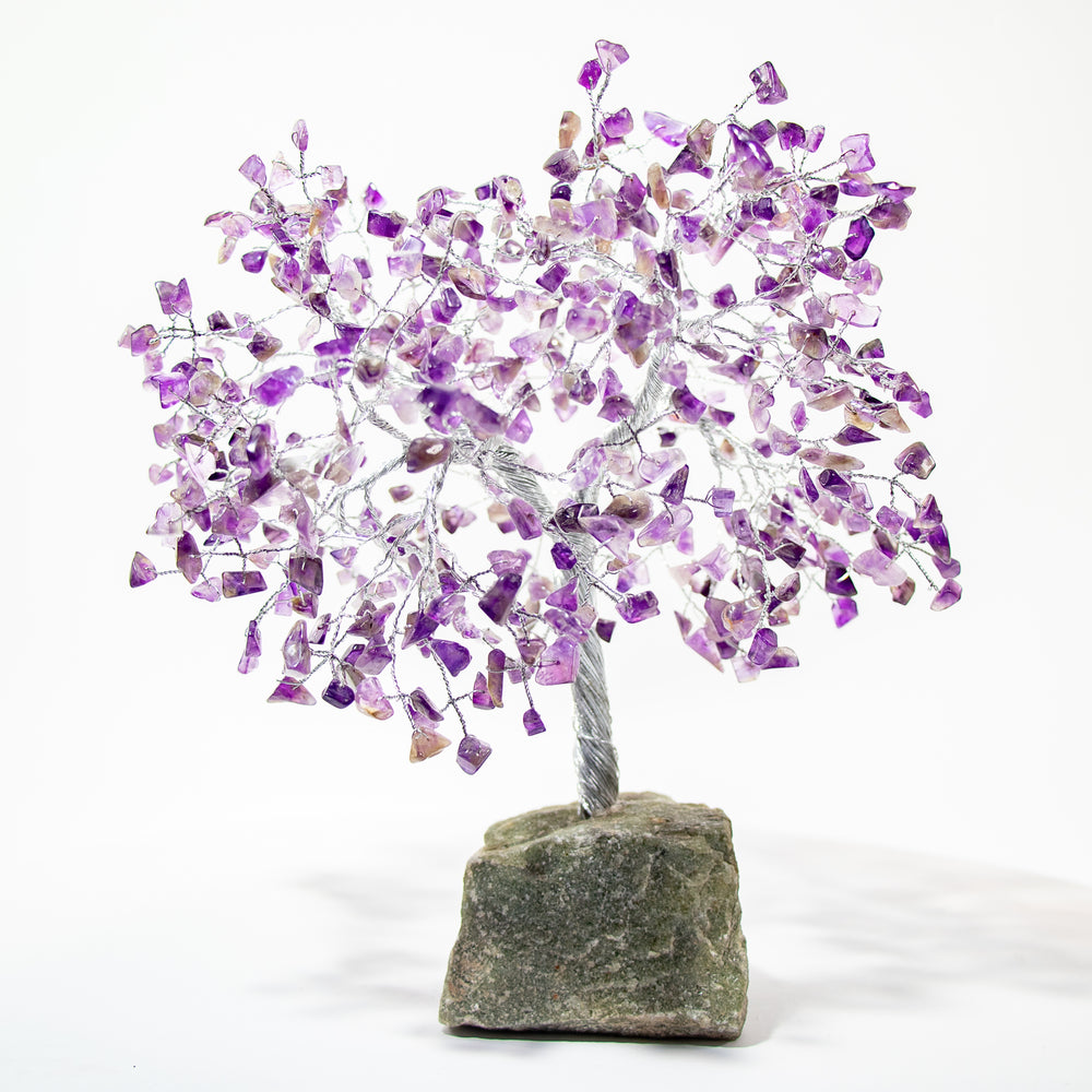 Bonsaï en quartz clair avec base en améthyste – 10 à 12 cm