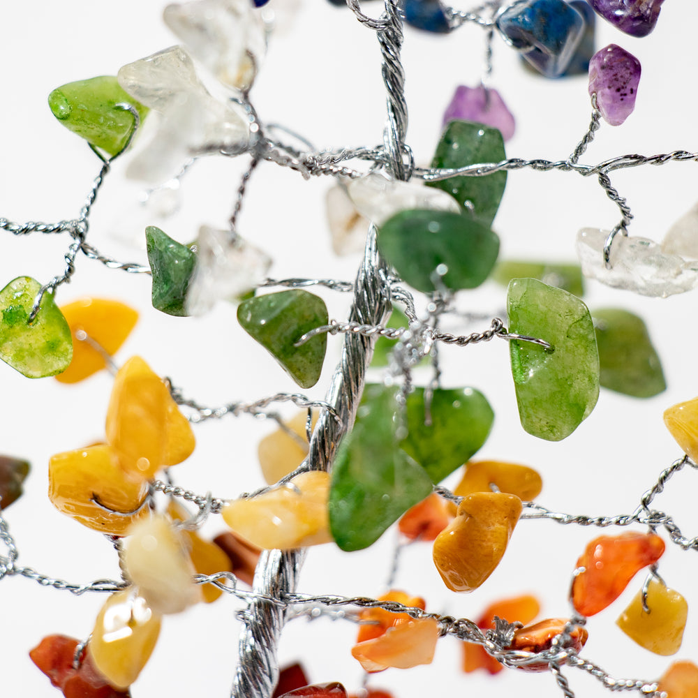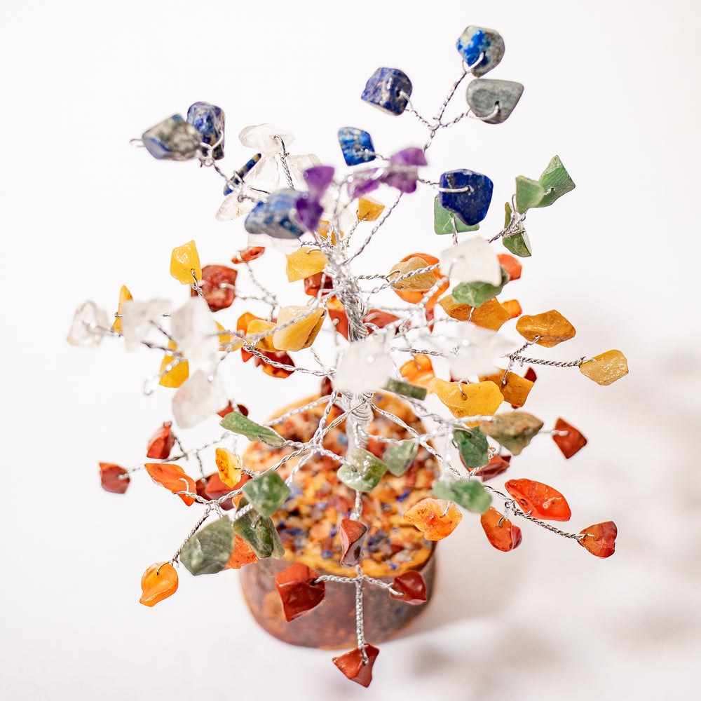 Arbre de cristal des 7 chakras avec base en bois naturel – Décoration de guérison et d'énergie positive