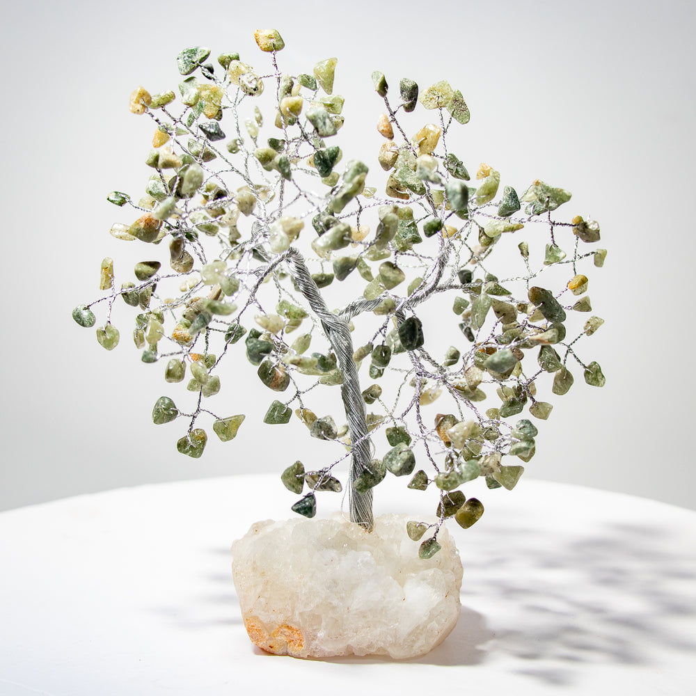Grand arbre à pierres précieuses avec base en pierre verte – 8 à 9 pouces